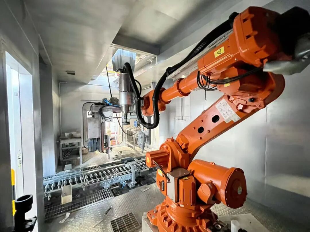 “设备全程全自动运行,工人完成产品上料后,每件产品自带的二维码会被扫描识别,设备完成选型后,再通过视觉成像核对选型准确性,随后将产品输送至去毛刺工位。工位内的机器人可依据产品外表面、内孔尺寸,自动更换适配毛刷。”中威集团车间主任余治兵介绍。