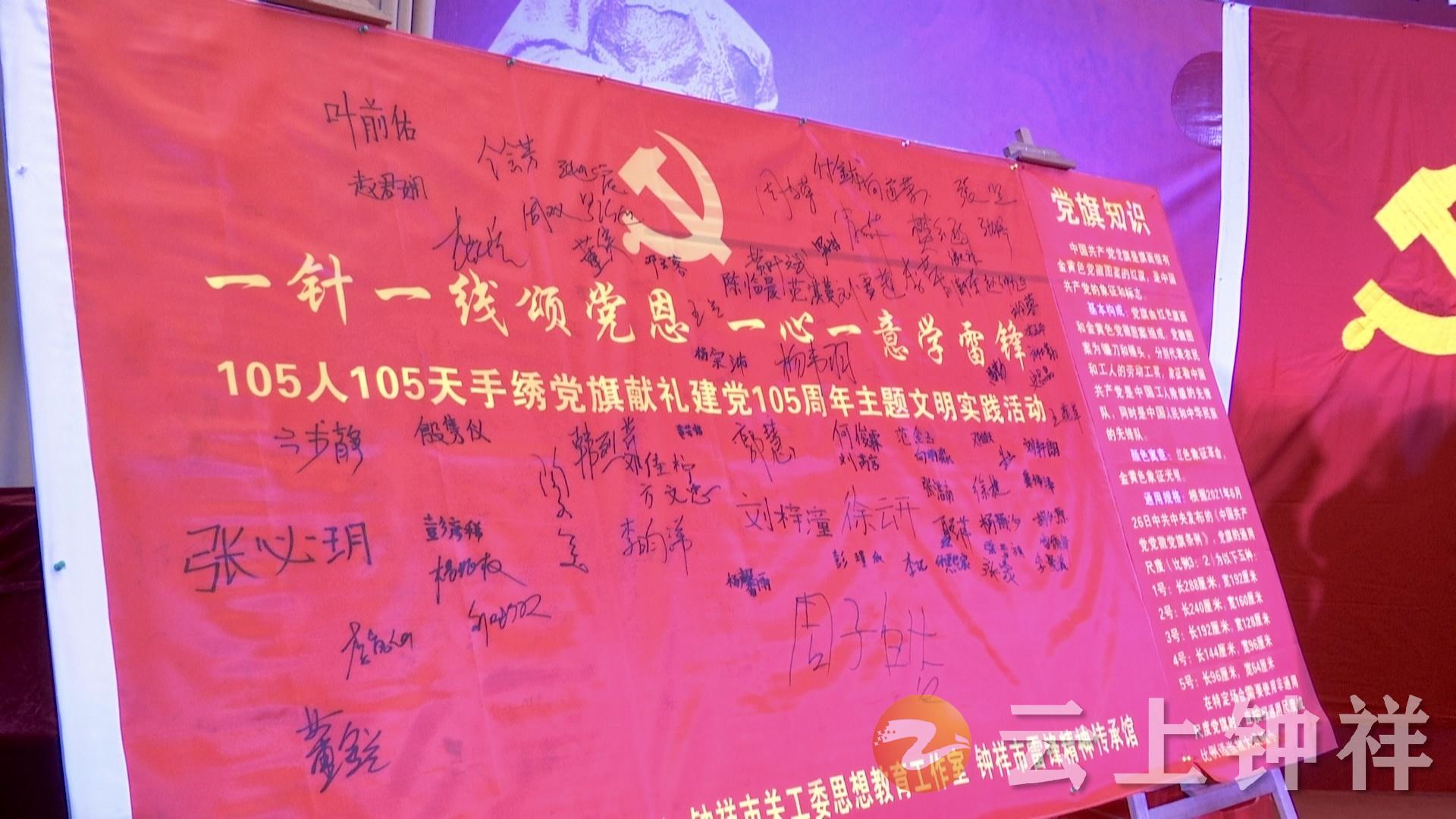 活动现场,老党员、志愿者、青少年等百余名参与者共同开启为期百日的手绣红旗献礼建党105周年活动。大家在年过八旬、“光荣在党56年”老党员李静指导下,以针为笔、以线为墨,在活动中宣讲党史,开展革命传统教育,厚植爱党爱国情怀。
