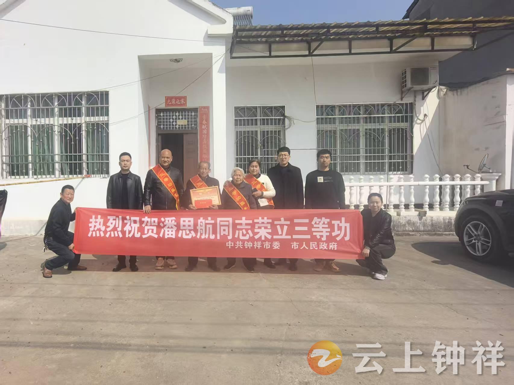 近日,钟祥市退役军人事务局联合旧口镇退役军人服务站组成“报喜团”,走进旧口镇春光村,为荣立三等功的3名现役军人家庭送上立功喜报、荣誉绶带及慰问金,传递党和政府的关怀与部队的荣誉。