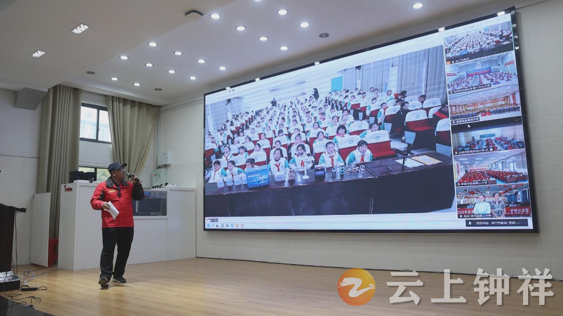 3月17日下午,钟祥市气象局邀请湖北省科学家精神宣讲团成员李鑫来到钟祥,在市实验小学设置主会场,通过视频直播连线的方式,与湖北仙桃以及新疆和田、麦盖提、精河、泽普等地学生共同开展世界气象日主题科普直播活动。