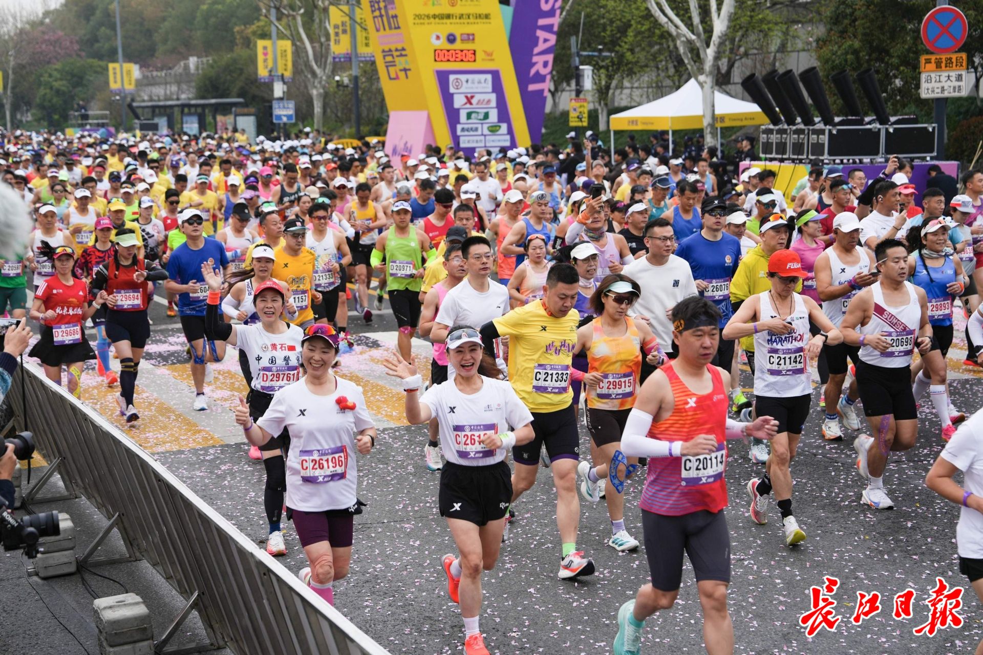 3月22日清晨7时30分,2026武汉马拉松正式鸣枪起跑,三万名选手从汉口沿江大道奔涌而出。长江日报记者彭年 摄