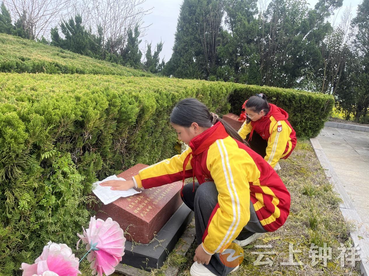 3月25日,清明节前夕,钟祥市新堤小学师生代表来到钟祥市长滩镇英烈园,举行“追思英雄志,向贤少年行”清明祭英烈主题教育实践活动。