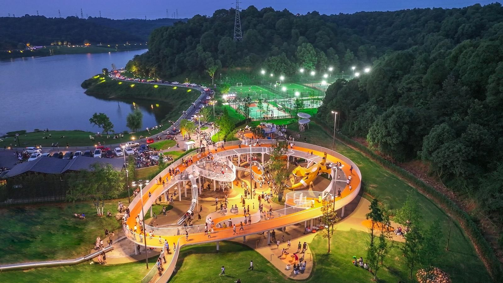 暮色四合,环湖灯带亮起。跑步的人、跳舞的人、遛娃的人,在光影中交织成一幅温暖的民生画卷。一座公园,唤醒了一座城的生机与幸福。