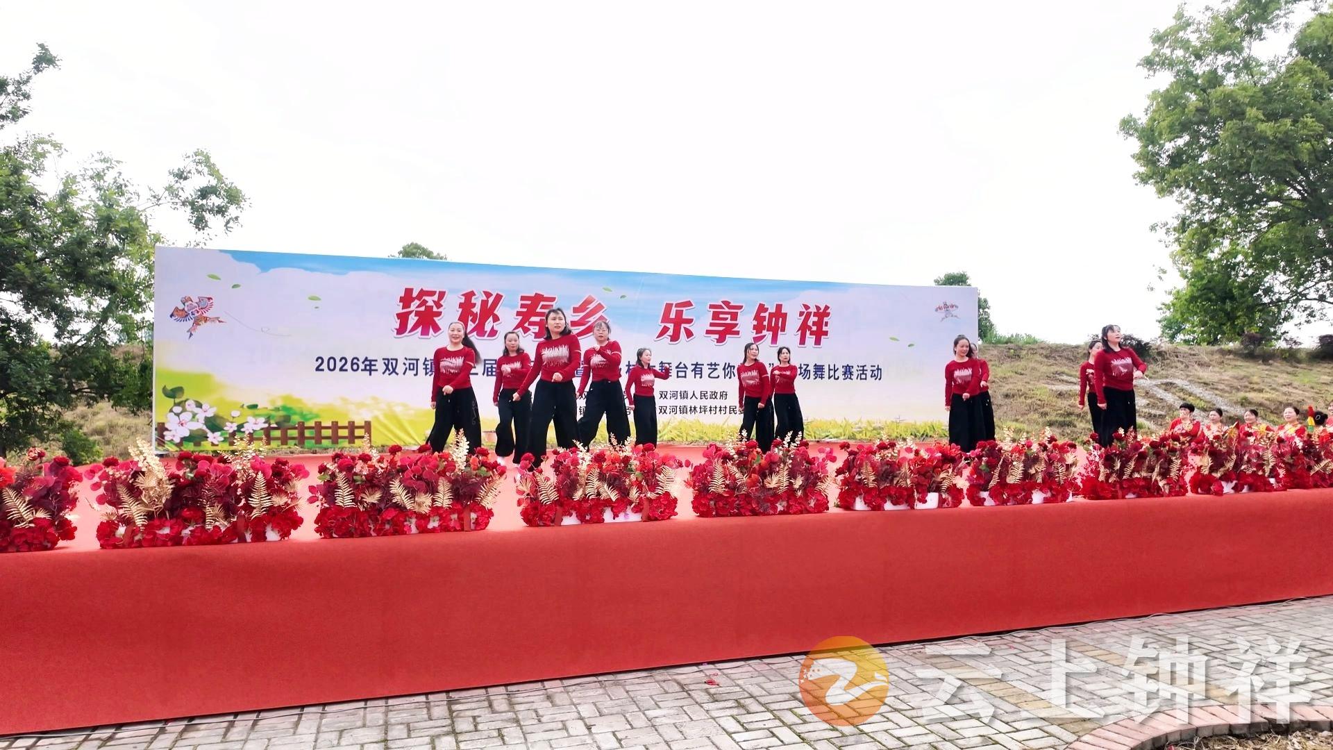 同日举办的广场舞比赛,来自双河镇各村的9支广场舞队伍轮番登场,大家以舞会友,为现场观众带来精彩的表演。