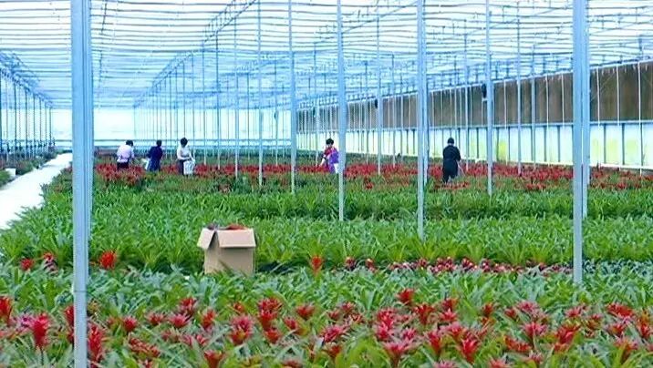 绿油油的苗圃,火红的凤梨,优雅的白掌……走进湖北农青园艺公司的花房,宛如徜徉在花海中。