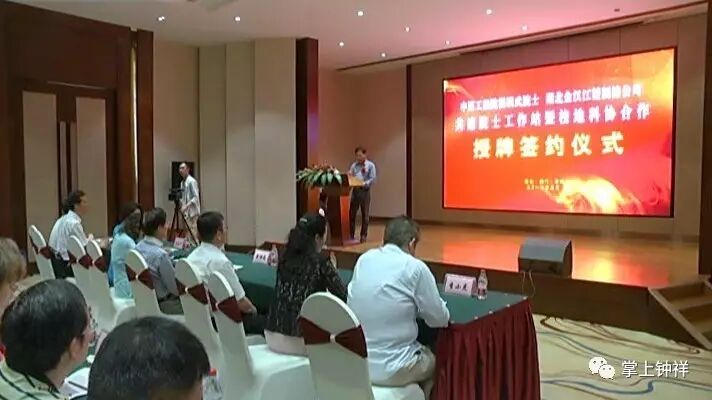 中国工程院院士樊明武与湖北金汉江精制棉有限公司共建院士工作站暨校地科协合作授牌签约仪式5月17号在钟祥举行。荆门、钟祥两地领导吕晓华、丁萍、郭志泉、李波、陈亚妮、鲁佳萍出席授牌签约仪式。