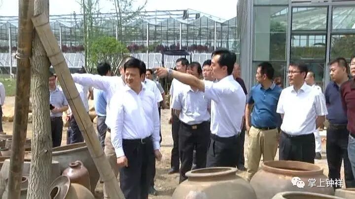 5月18号,荆门市市长张依涛带领参加荆京“四化同步”示范带建设现场推进会的代表来到钟祥,现场观摩汇源农谷体验园建设情况。