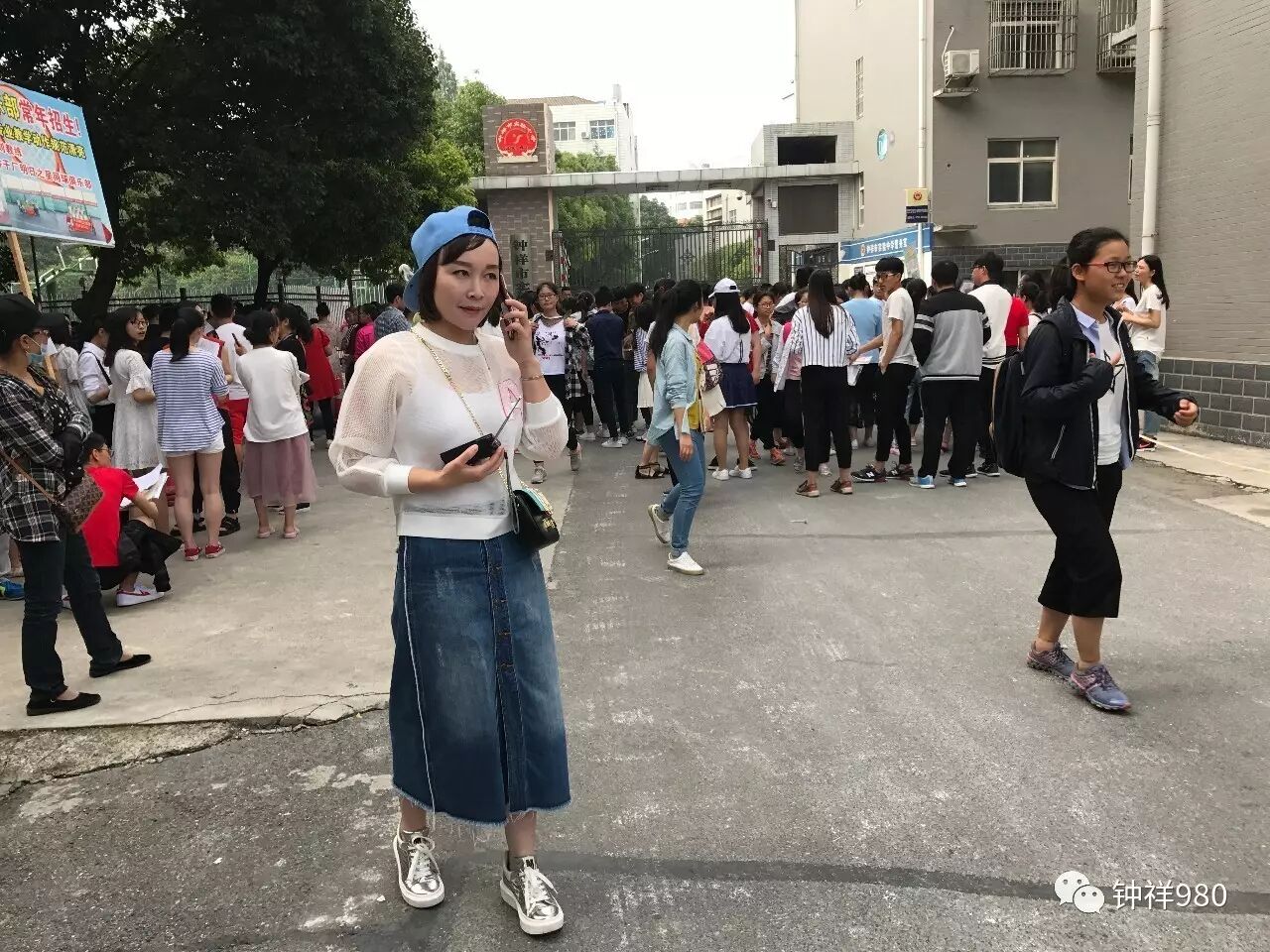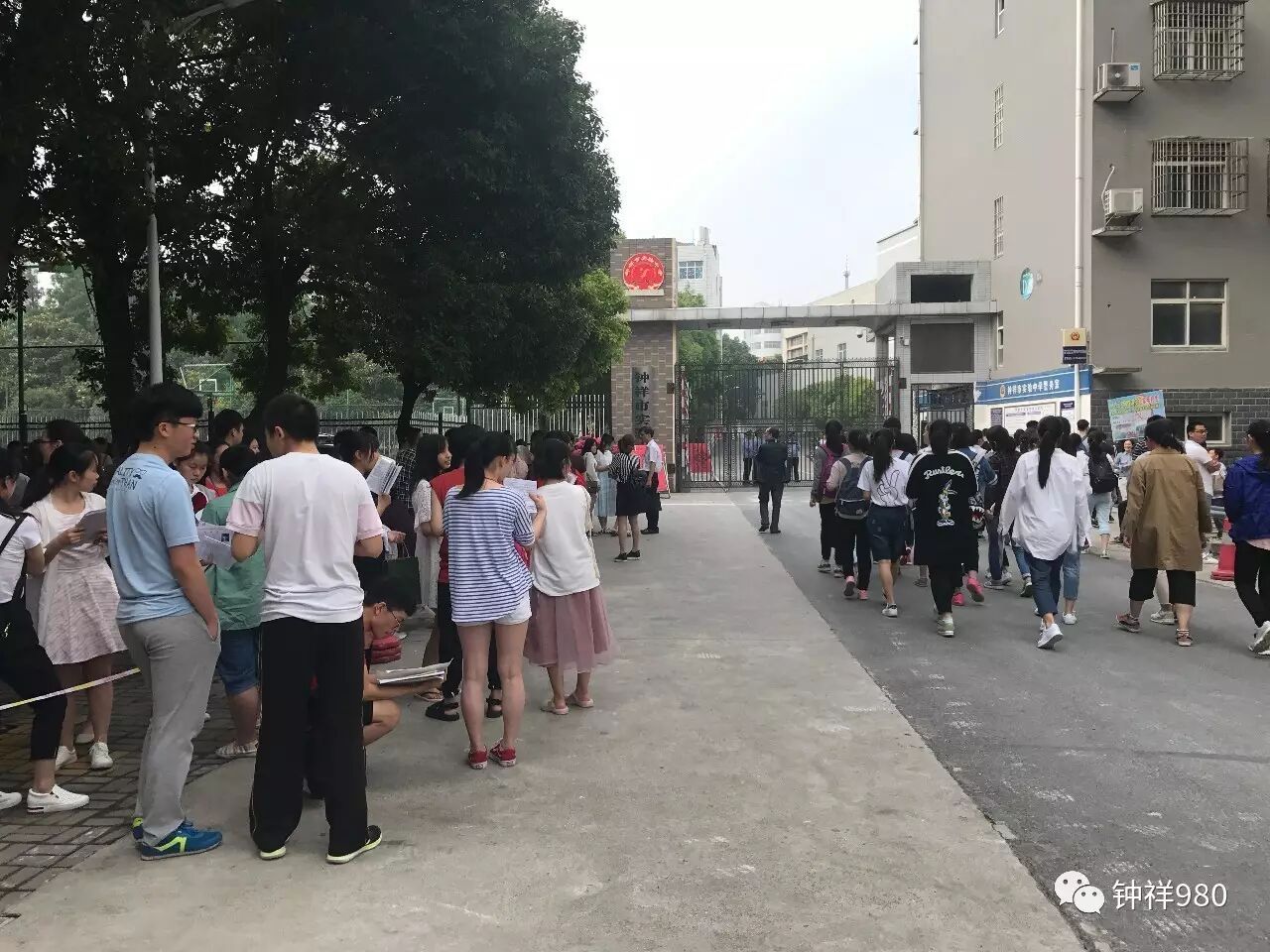钟祥二中考点的门口,已陆续有考生及家长在外等候。