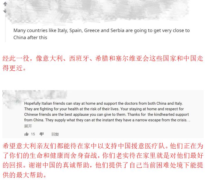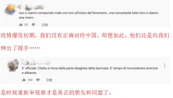 这是从昨天(3月24日)开始,在中外互联网上广为流传的一张照片。照片显示,一位意大利市民正在将一面欧盟旗帜撤下,并换上中国的五星红旗。根据照片中这位市民身后显示的SVECOM字样,小锐查阅发现,这是位于意大利大威尼托大区维琴察市的一家机械修理厂,从早期的谷歌街景照片上能看到,这家规模不小的修理厂门口常年飘扬着欧盟旗帜和意大利国旗。在转发这张照片时,一位推特网友如是解读意大利人换旗一幕背后的用意:“为了象征性地抗议欧盟在新冠病毒疫情下对其成员缺乏支持,并显示出与中国友好关系的升温,一些意大利公民开始撤下欧盟旗帜,替换为五星红旗。以感谢中国在严峻疫情下向该国提供的无私帮助。”亦有外国网友认为,此番一升一降,也是意大利人耿直性格的最好体现,“他们用旗帜表明着自己的态度和决心”。事实上,近一段时间内,对欧盟的愤怒,对中国的感谢,对疫情之初部分意大利人歧视中国人行为的歉意……这些情绪在意大利网友发表的网络意见中屡见不鲜:无独有偶,就在有意大利人自发用五星红旗替代欧盟旗帜的同时,俄媒报道也报道了意大利市民拿下欧盟旗帜换成俄罗斯三色旗帜的画面。随着新冠肺炎蔓延,意大利向世界多国发出援助请求。目前中国、俄罗斯、古巴等国派出医疗队驰援意大利,中国更先后向意大利派遣两批医疗专家。3月12日,中国政府向意大利派遣的首批抗疫医疗专家组抵达罗马。一行9人携带了大量医疗防疫物资和设备,包括呼吸机、心电图仪和数以万计的口罩。3月18日,中国政府派遣的第二批抗疫医疗专家组抵达米兰机场。一行13人随机携带了呼吸机、双通道输液泵、监护仪、检测试剂等9吨捐助物资。俄罗斯也在3月23日派出数架军用飞机前往意大利援助,共同抗击新冠肺炎疫情。